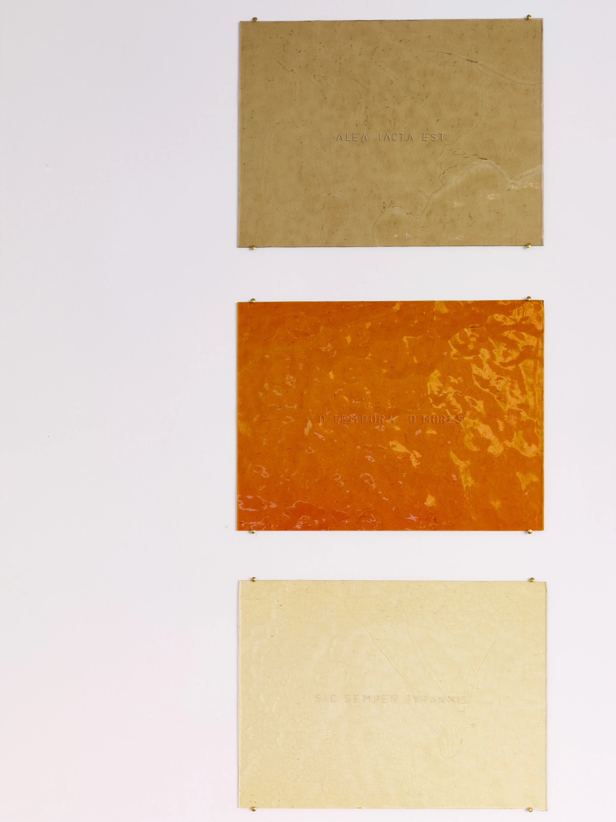 IlQuartoStato continues a long-term research of the duo on texts created with glass nails.